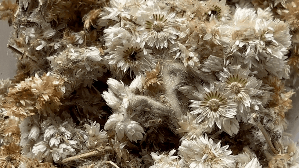 Gordolobo translates to “mullein” in Spanish, and if you are familiar with mullein you will notice Gordolobo looks completely different. That’s because it is! This specific plant is part of the Gnaphalium tribe in the Pseudognaphalium genus. It differs from the mullein found in the states or Europe, which is part of the Verbascum genus. Gordolobo is considered Mexican mullein, however it is also known as rabbit tobacco, cudweed, or everlasting. This plant has many names!
